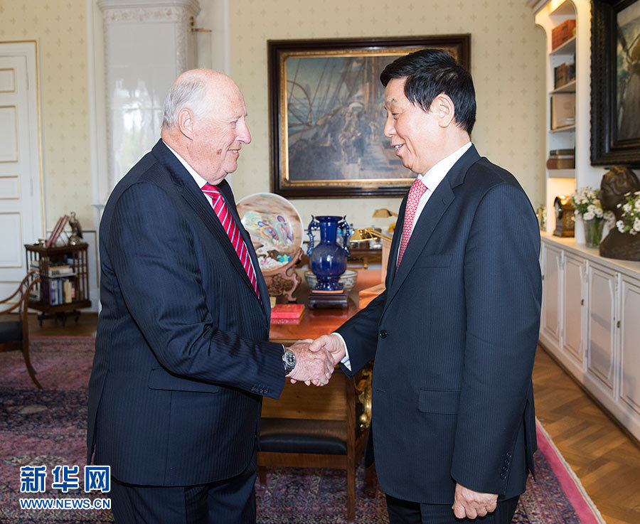 會見哈拉爾五世時,栗戰(zhàn)書首先轉(zhuǎn)達(dá)了習(xí)近平主席的親切問候,并對挪威國慶日致以熱烈祝賀。他說,去年國王陛下成功訪華,兩國元首為新時期中挪關(guān)系發(fā)展作出戰(zhàn)略規(guī)劃。今年是中挪建交65周年,希望雙方以此為契機(jī),在相互尊重、平等相待的基礎(chǔ)上,鞏固友誼,擴(kuò)大合作,推動兩國關(guān)系實(shí)現(xiàn)更好發(fā)展。哈拉爾五世表示,感謝習(xí)近平主席和中國人民對挪威的友好情誼,欽佩中國取得的巨大發(fā)展成就。挪威愿在冬季運(yùn)動等領(lǐng)域加強(qiáng)對華合作,助力中國成功舉辦2022年冬奧會。