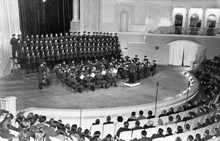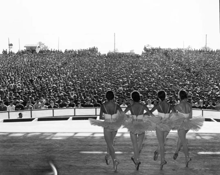 ↑1956年,中國(guó)人民解放軍歌舞團(tuán)在莫斯科演出。(塔斯社稿)