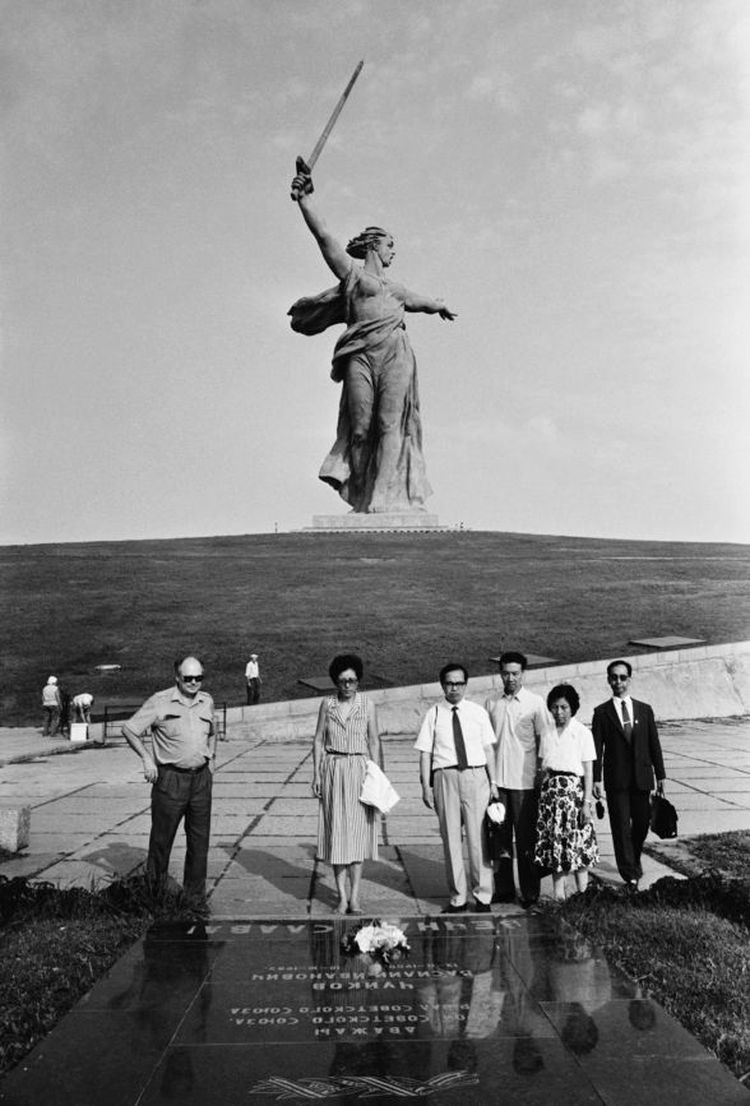 ↑中國(guó)記者在伏爾加格勒馬馬耶夫山崗合影。 (1987年,塔斯社稿)
