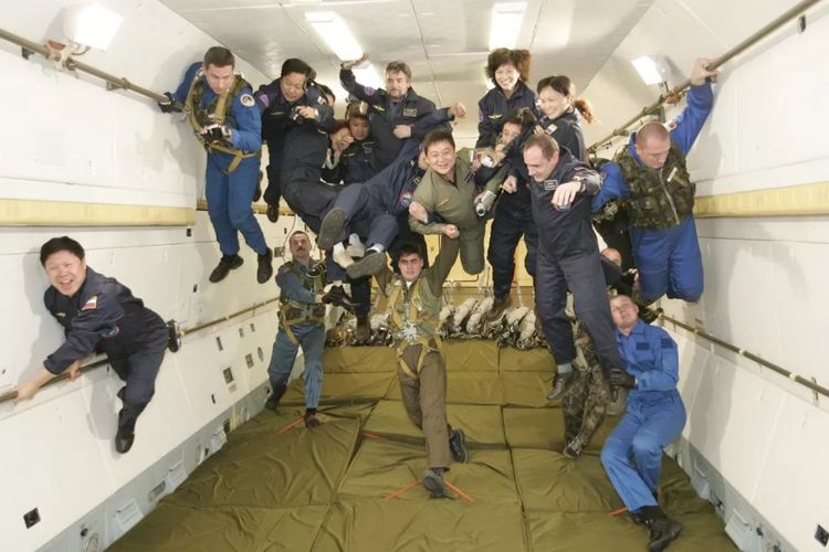 ↑在俄羅斯首都莫斯科的加加林阿特拉斯宇航中心,10名中國(guó)游客在俄羅斯宇航員的保護(hù)下體驗(yàn)太空失重訓(xùn)練。(2004年12月17日,陳建力)