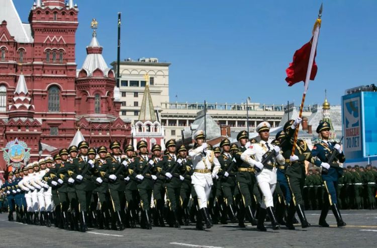 ↑莫斯科,中國(guó)人民解放軍三軍儀仗隊(duì)參加紀(jì)念衛(wèi)國(guó)戰(zhàn)爭(zhēng)勝利70周年紅場(chǎng)閱兵式總彩排。(2015年5月7日,馬占成)