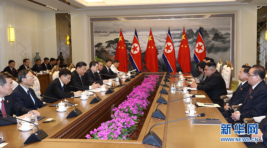 金正恩說,今年是朝中建交70周年和新中國成立70周年的雙喜之年,朝方愿同中方一道,舉行廣泛而熱烈的慶?;顒?。當(dāng)前,朝鮮黨和人民正全力貫徹落實新戰(zhàn)略路線,朝方愿多學(xué)習(xí)中國經(jīng)驗做法,積極致力于發(fā)展經(jīng)濟、改善民生。