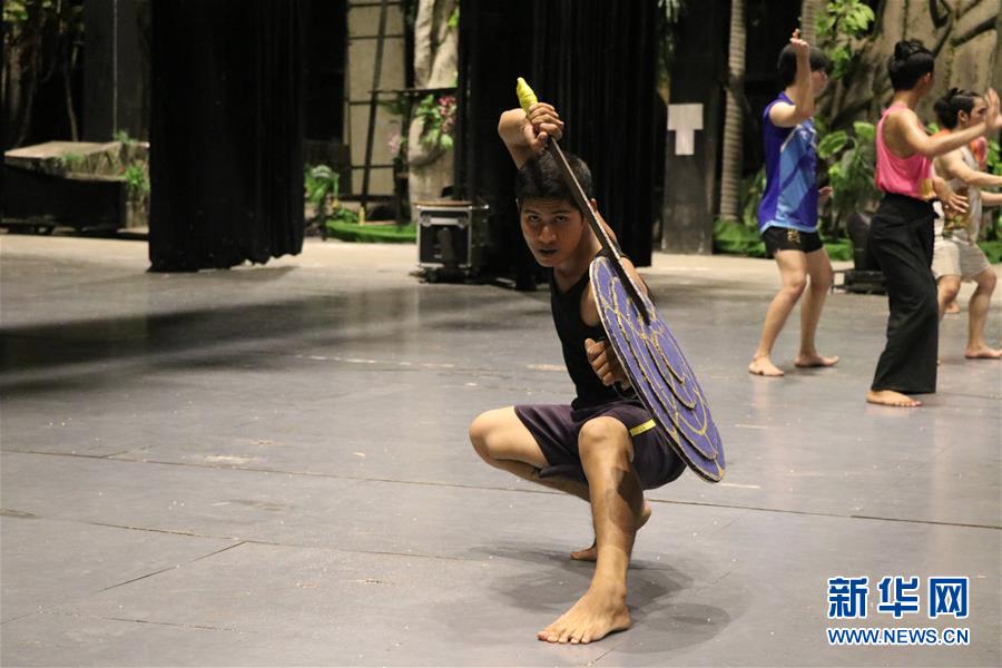 6月11日,在柬埔寨暹粒,孫塞貼農在演出前進行排練。新華社記者 毛鵬飛 攝