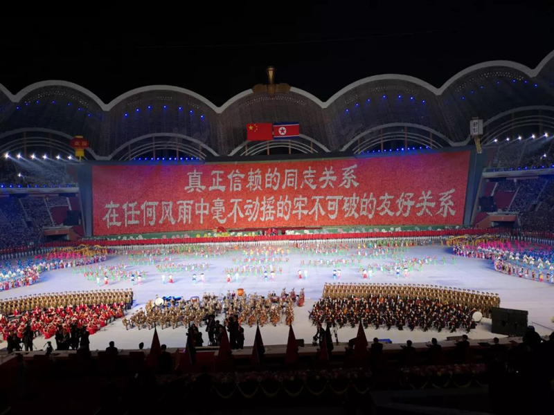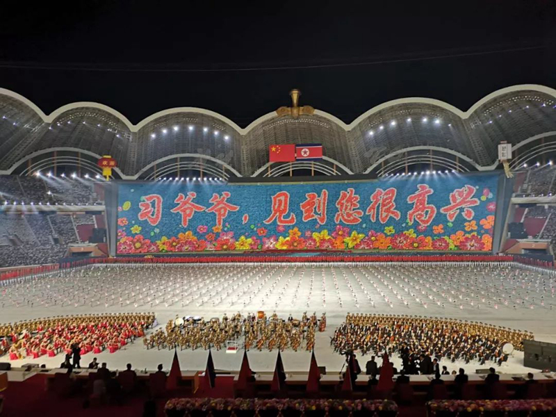 這臺(tái)演出為習(xí)近平此訪專門精心創(chuàng)作,數(shù)萬名朝鮮演員參加表演,朝鮮三大樂團(tuán)首次同臺(tái)獻(xiàn)藝,整場(chǎng)演出氣勢(shì)恢宏、震撼感人。