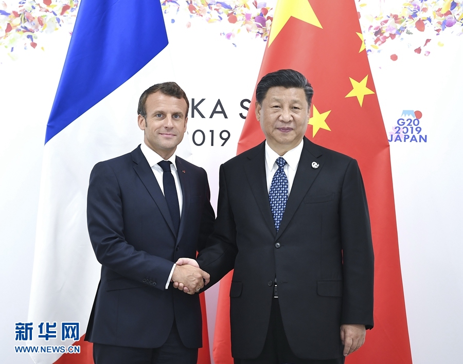 6月29日,國(guó)家主席習(xí)近平在大阪會(huì)見(jiàn)法國(guó)總統(tǒng)馬克龍。 新華社記者 燕雁 攝