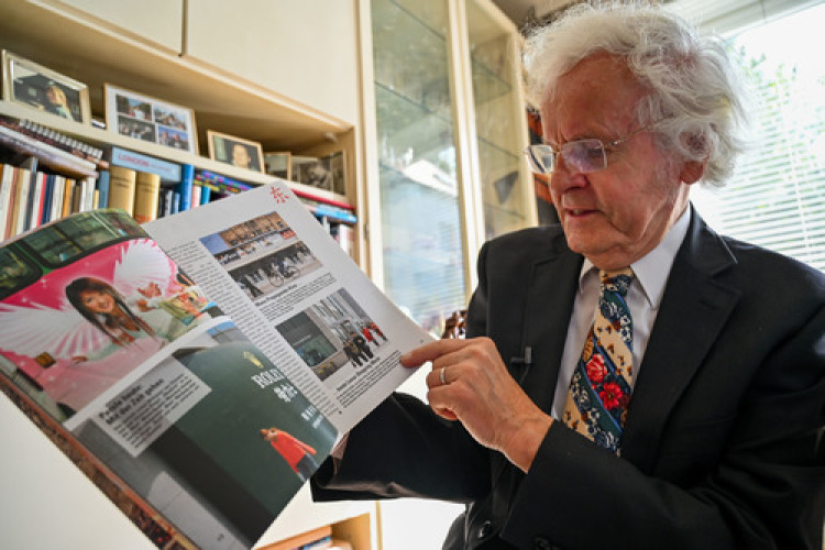 9月10日,德國漢堡,馬庭·庫摩在家中展示他在中國拍攝的照片。(新華社記者連振攝)