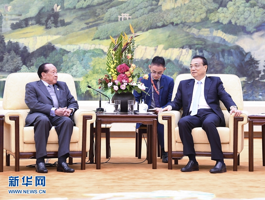 10月9日,國務(wù)院總理李克強(qiáng)在北京人民大會(huì)堂會(huì)見來華出席2019年中國北京世界園藝博覽會(huì)閉幕式的柬埔寨副首相賀南洪。 新華社記者 燕雁攝