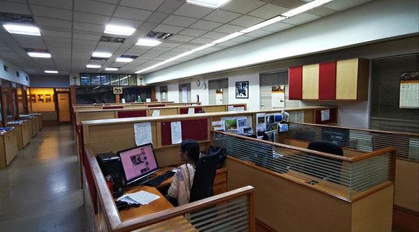 文卡特斯瓦倫負(fù)責(zé)《印度教徒報(bào)》的頭條版樣設(shè)計(jì)。他的辦公室門口,整整齊齊地碼放著其他報(bào)紙的刊樣。