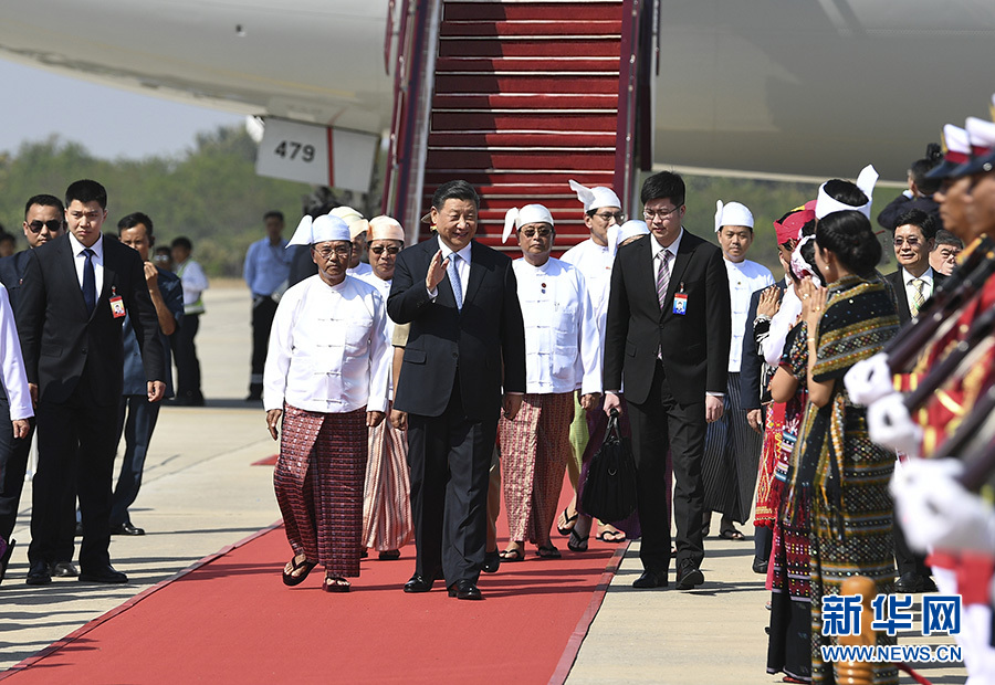 當(dāng)?shù)貢r(shí)間1月17日下午,國(guó)家主席習(xí)近平乘專機(jī)抵達(dá)內(nèi)比都國(guó)際機(jī)場(chǎng),開始對(duì)緬甸聯(lián)邦共和國(guó)進(jìn)行國(guó)事訪問。習(xí)近平抵達(dá)時(shí),緬甸第一副總統(tǒng)敏瑞率多名內(nèi)閣部長(zhǎng)在舷梯旁熱情迎接。 新華社記者 饒愛民 攝