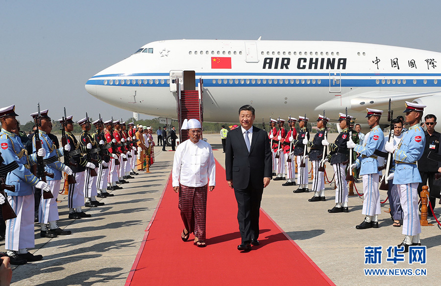 當(dāng)?shù)貢r(shí)間1月17日下午,國(guó)家主席習(xí)近平乘專機(jī)抵達(dá)內(nèi)比都國(guó)際機(jī)場(chǎng),開始對(duì)緬甸聯(lián)邦共和國(guó)進(jìn)行國(guó)事訪問。習(xí)近平抵達(dá)時(shí),緬甸第一副總統(tǒng)敏瑞率多名內(nèi)閣部長(zhǎng)在舷梯旁熱情迎接。 新華社記者 鞠鵬 攝