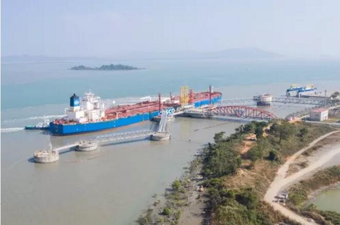 ▲1月13日,一艘油輪??吭诰挼轳R德島中緬油氣管道項目卸油碼頭,準備卸載石油。這是“一帶一路”倡議在緬甸實施的先導項目。2017年4月10日,中緬領導人在北京共同見證了多領域雙邊合作文件的簽署。新華社記者杜宇攝