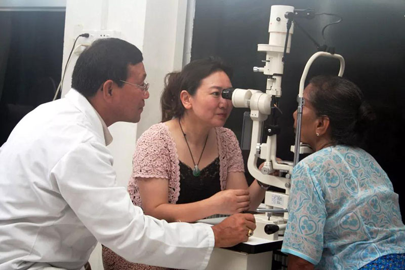 ▲2011年5月31日至6月7日,中國赴緬國際復明醫(yī)療隊在緬甸仰光開展“光明行”活動,為248名緬甸白內(nèi)障患者免費進行手術(shù)。圖為中緬兩國醫(yī)生為已接受手術(shù)的緬甸白內(nèi)障患者復查。