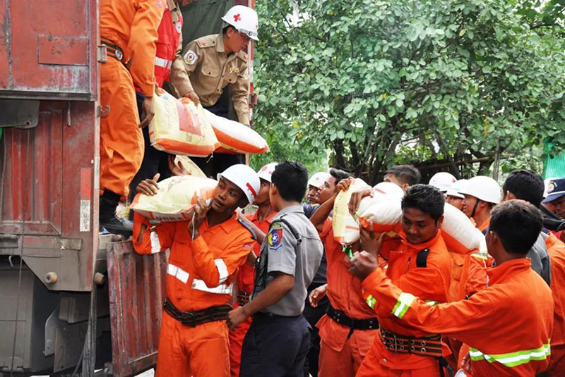 ▲2015年8月7日,云南省政府向緬甸災(zāi)民捐贈的救災(zāi)物資運抵曼德勒。持續(xù)降雨導致緬甸14個省邦中的12個省邦遭受不同程度水災(zāi)。