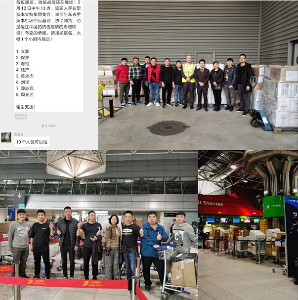 特別值得一提的是海航集團的譚向東副董事長、高建副總裁,為了協(xié)助我們把捐贈物資盡快運回國內(nèi),高度重視,靠前指揮,第一時間給予全面而具體的支持。旗下的首都航空公司市場部副總顧凌毅、貨運中心高級經(jīng)理田國偉協(xié)調(diào)陳肖藝、倪福元、李小戈、首航西安基地總監(jiān)周瑞喜、海航速運境外管理部副總經(jīng)理池夢瑩以及郭宇萍等一批業(yè)務(wù)骨干加班加點,克服了時間緊張,物資量大,境外時差等諸多困難,創(chuàng)造了許多個“首航第一次”。蟠龍國際集團、中遠海運航空公司則為這場“空中接力”提供了高端快捷的航空物流平臺。而在第四批物資回運過程中,更是得到了溫州市防疫指揮部的鼎力相助,幫助我們把西班牙巴塞羅那收集點上的捐贈物資,從布魯塞爾轉(zhuǎn)道回國。