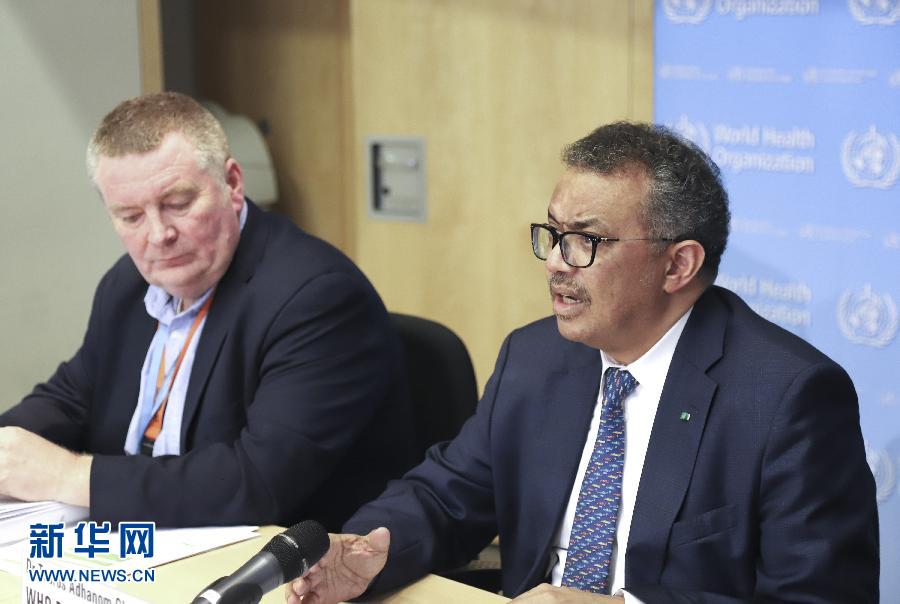 3月5日,在瑞士日內(nèi)瓦,世界衛(wèi)生組織總干事譚德塞(右)在世衛(wèi)組織例行記者會上發(fā)言。世界衛(wèi)生組織總干事譚德塞5日呼吁,各國應(yīng)調(diào)動并協(xié)調(diào)政府各部門間的行動,以“全政府”參與的方式應(yīng)對新冠肺炎疫情。 新華社記者 陳俊俠 攝