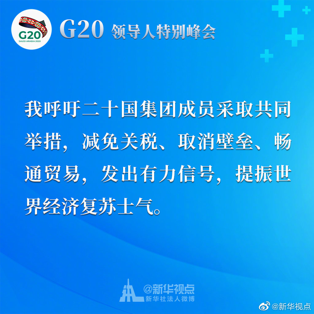 習(xí)近平在二十國集團領(lǐng)導(dǎo)人應(yīng)對新冠肺炎特別峰會上重要講話金句