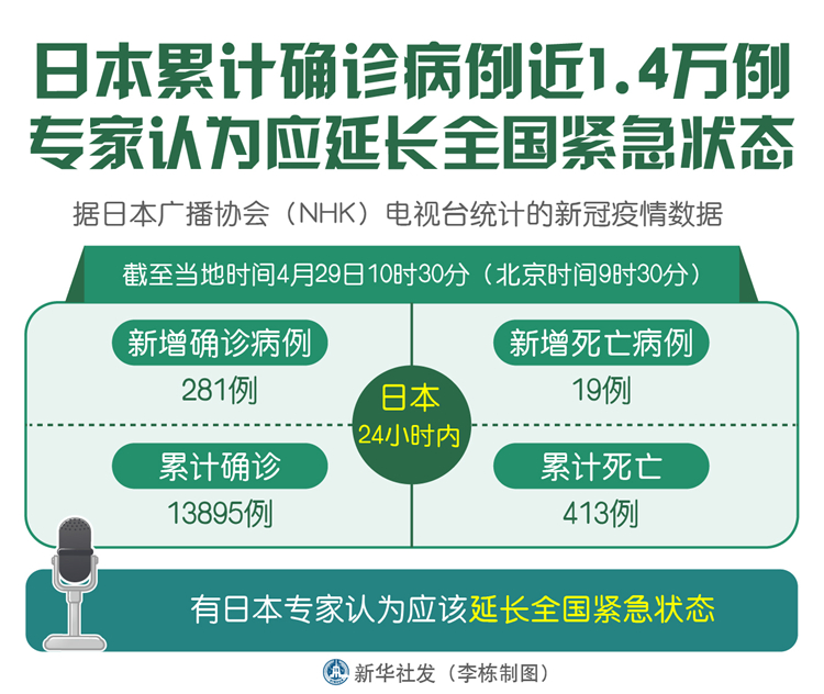 日本累計(jì)確診病例近1.4萬(wàn)例 專(zhuān)家認(rèn)為應(yīng)延長(zhǎng)全國(guó)緊急狀態(tài)-新華網(wǎng)