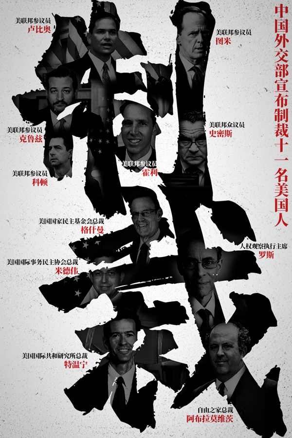 趙立堅(jiān)說(shuō),針對(duì)美方錯(cuò)誤行徑,中方?jīng)Q定即日起對(duì)在涉港問(wèn)題上表現(xiàn)惡劣的美聯(lián)邦參議員盧比奧、克魯茲、霍利、科頓、圖米,聯(lián)邦眾議員史密斯,以及美國(guó)國(guó)家民主基金會(huì)總裁格什曼、美國(guó)國(guó)際事務(wù)民主協(xié)會(huì)總裁米德偉、美國(guó)國(guó)際共和研究所總裁特溫寧、“人權(quán)觀察”執(zhí)行主席羅斯、“自由之家”總裁阿布拉莫維茨實(shí)施制裁。