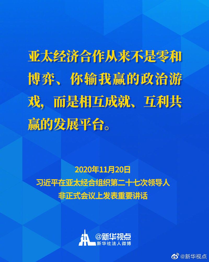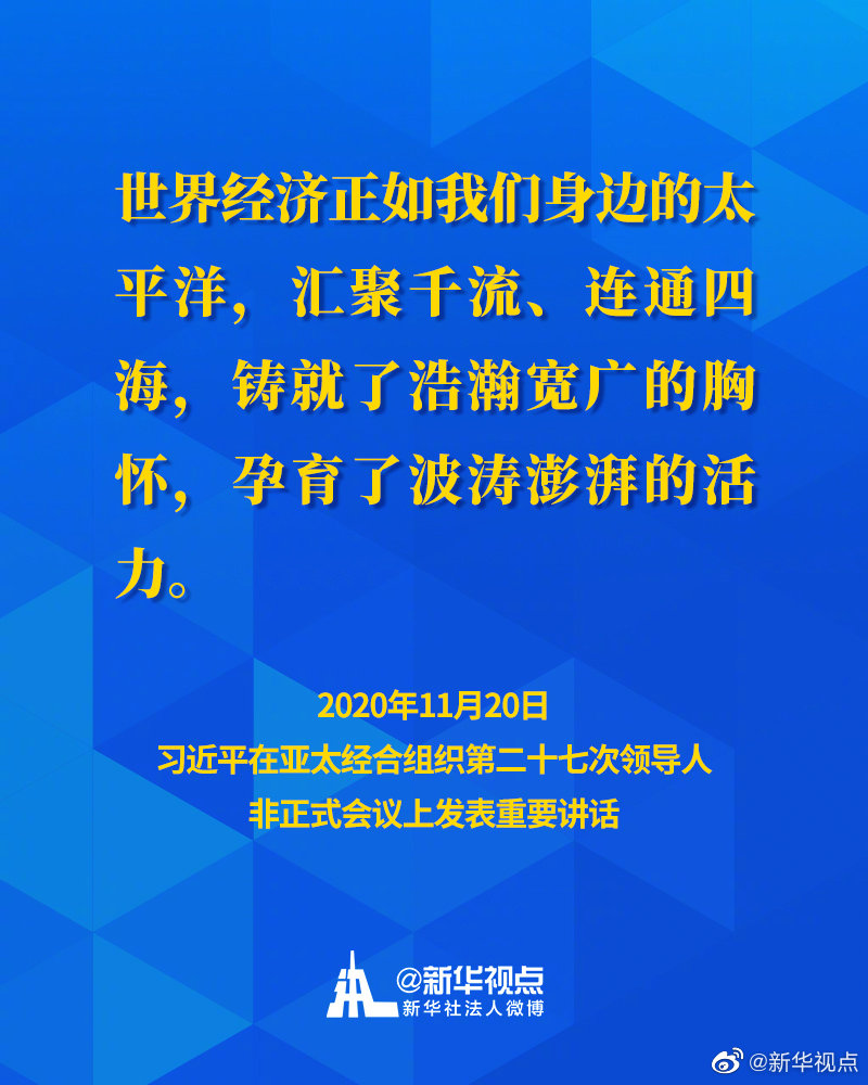 11月20日,國家主席習(xí)近平在亞太經(jīng)合組織第二十七次領(lǐng)導(dǎo)人非正式會議上發(fā)表重要講話。一起來看習(xí)主席的APEC金句↓↓