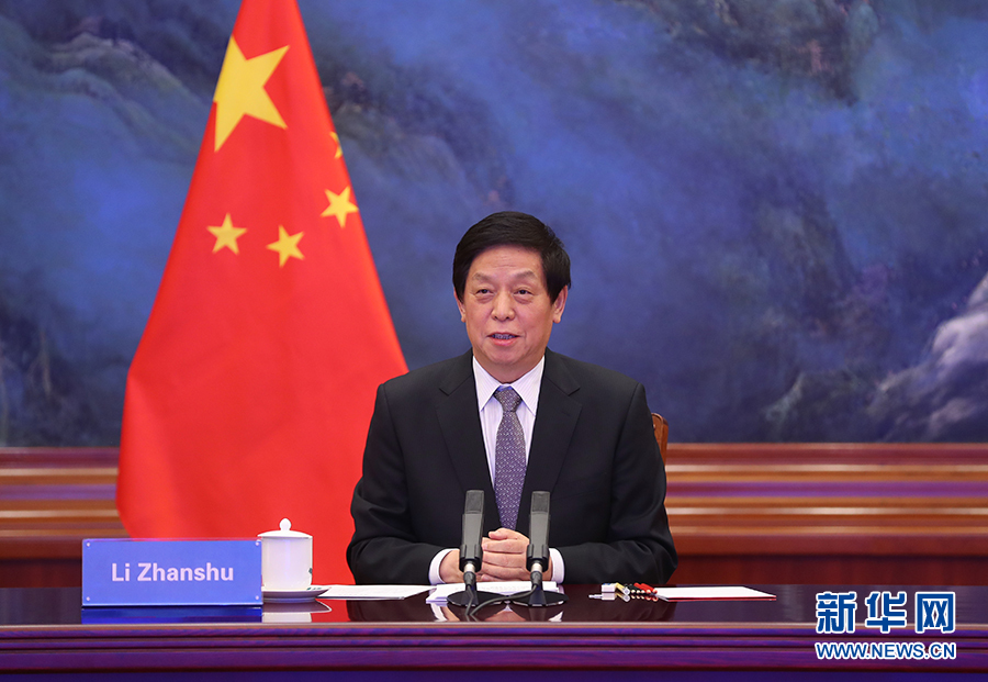 11月23日,全國人大常委會(huì)委員長(zhǎng)栗戰(zhàn)書在北京以視頻方式同老撾國會(huì)主席巴妮舉行會(huì)談。新華社記者 姚大偉 攝
