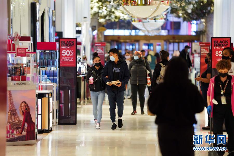 受新冠疫情影響,今年美國“黑色星期五”購物促銷日前往商店購物的人數(shù)較往年減少。