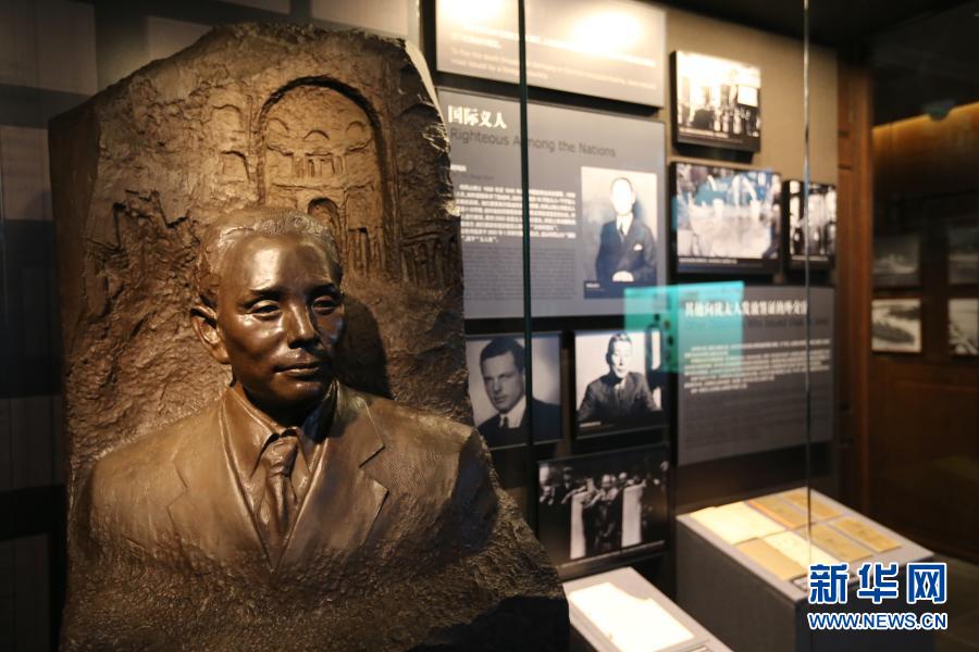這是上海猶太難民紀念館內(nèi)陳列的何鳳山塑像(12月8日攝)。何鳳山有“中國的辛德勒”之稱。1938年至1940年,何鳳山擔任中國駐奧地利維也納總領(lǐng)事期間,向數(shù)千猶太人簽發(fā)了“生命簽證”,使他們得以逃脫納粹魔爪。