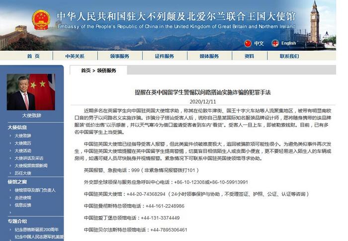 中國駐英國大使館已經(jīng)指導(dǎo)受害人報(bào)警,但此類案件偵破難度極大,追回被騙款項(xiàng)可能性很小。為避免類似事件再次發(fā)生,中國駐英國大使館提醒在英中國留學(xué)生提高警惕,切莫盲目相信陌生人或貪圖小便宜,更不要輕易進(jìn)入陌生人的車輛或房間,如遇可疑人員盡快脫身并視情報(bào)警。緊急情況下可聯(lián)系中國駐英國使領(lǐng)館尋求協(xié)助。