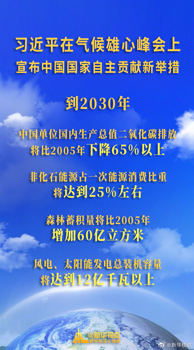 習(xí)近平宣布中國(guó)國(guó)家自主貢獻(xiàn)新舉措