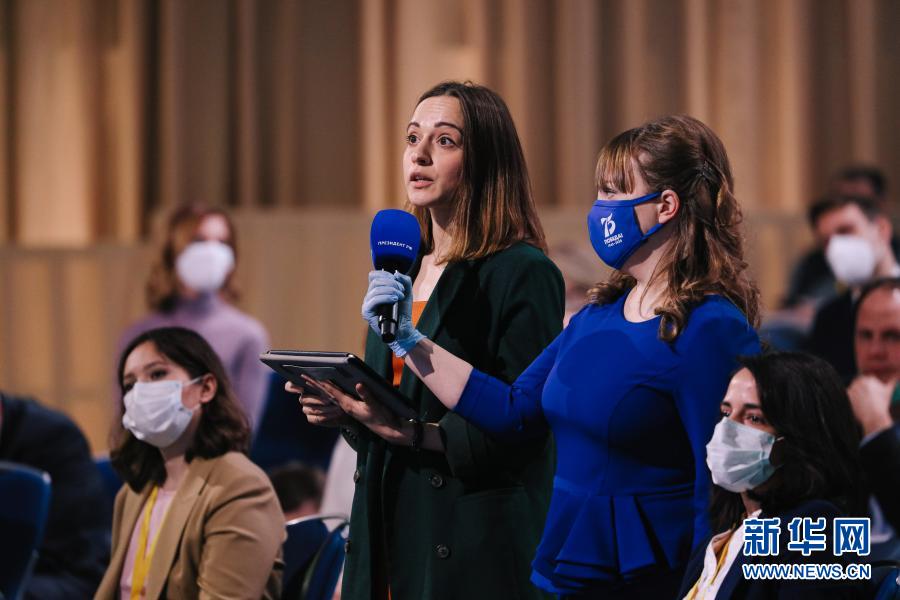 12月17日,在俄羅斯首都莫斯科,媒體記者在年度記者會上向俄羅斯總統(tǒng)普京提問。新華社發(fā)(葉甫蓋尼·西尼岑攝)