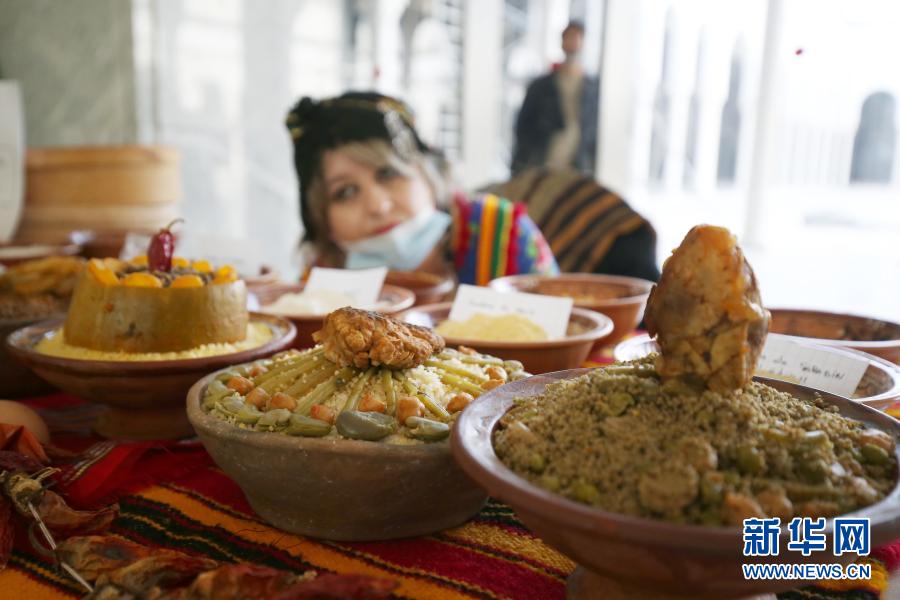 這是12月17日在阿爾及利亞首都阿爾及爾一個(gè)文化活動(dòng)上拍攝的“古斯古斯”。