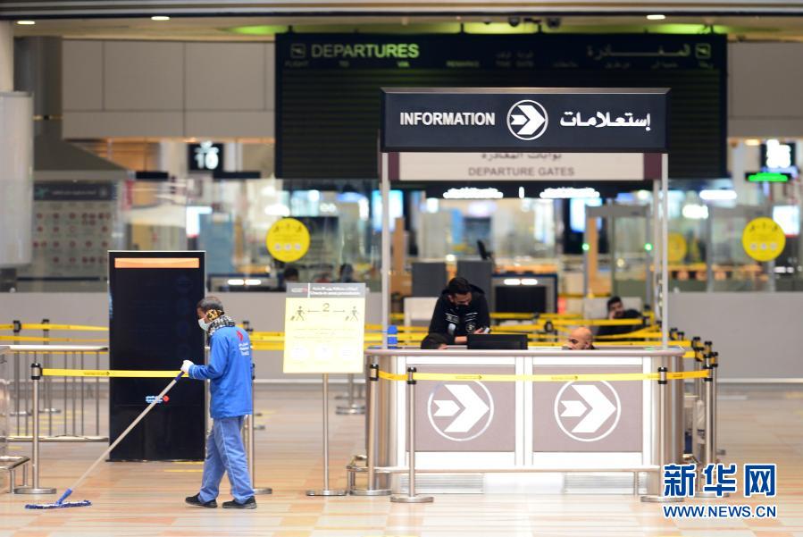 這是12月22日在科威特費(fèi)爾瓦尼耶省的科威特國際機(jī)場拍攝的空曠的出發(fā)大廳。