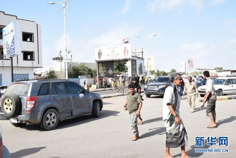 12月30日,在也門亞丁,政府軍士兵在爆炸后封鎖了亞丁國(guó)際機(jī)場(chǎng)的入口。新華社發(fā)(穆拉德·阿卜杜攝)