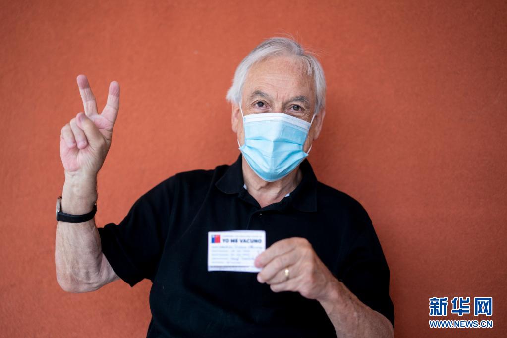2月12日,在智利南部河大區(qū)福德羅諾市的一處社區(qū)家庭保健中心,智利總統(tǒng)皮涅拉接種中國(guó)疫苗后比出“V”的手勢(shì)。新華社發(fā)