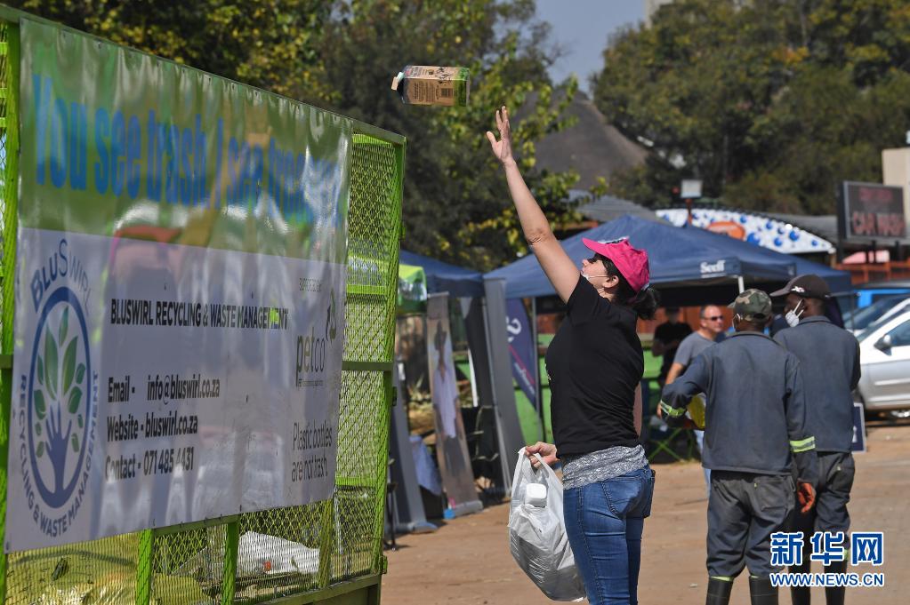 4月22日,南非比勒陀利亞的志愿者將可回收垃圾放入指定地點(diǎn)。