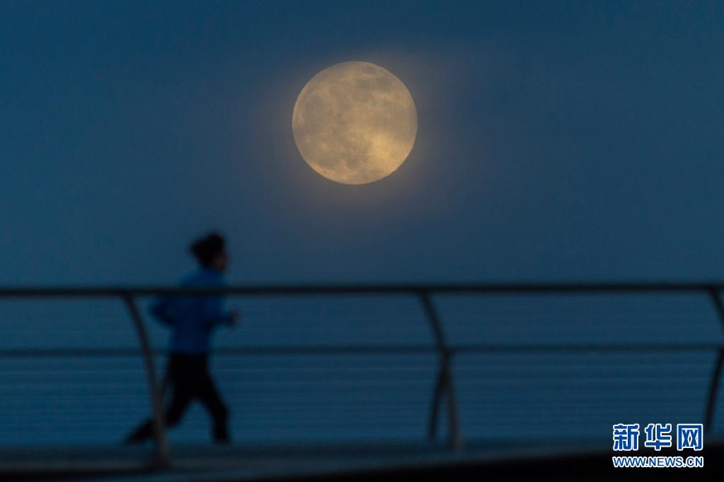 這是4月26日在英國倫敦拍攝的千禧橋附近的“超級月亮”。