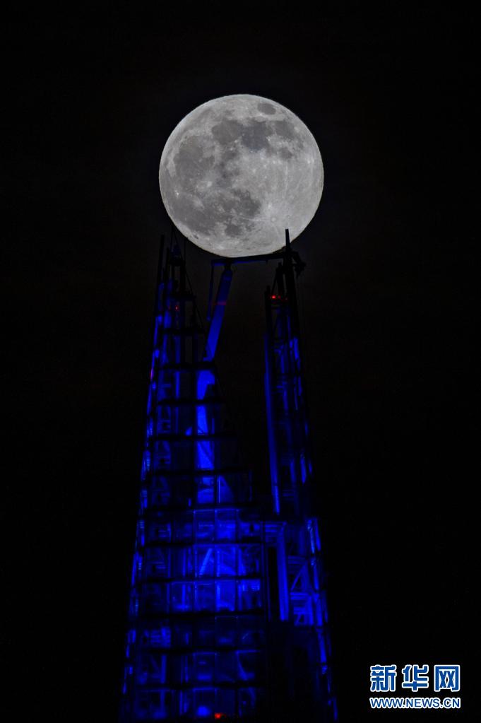 這是4月26日在英國倫敦拍攝的“碎片大廈”旁的“超級月亮”。
