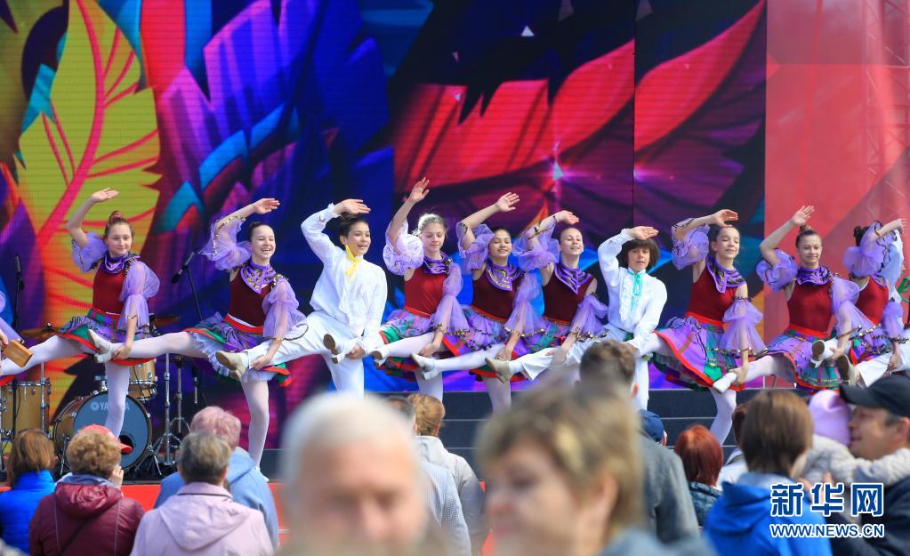 5月9日,演員在白俄羅斯首都明斯克勝利日節(jié)慶活動現(xiàn)場進(jìn)行文藝表演。