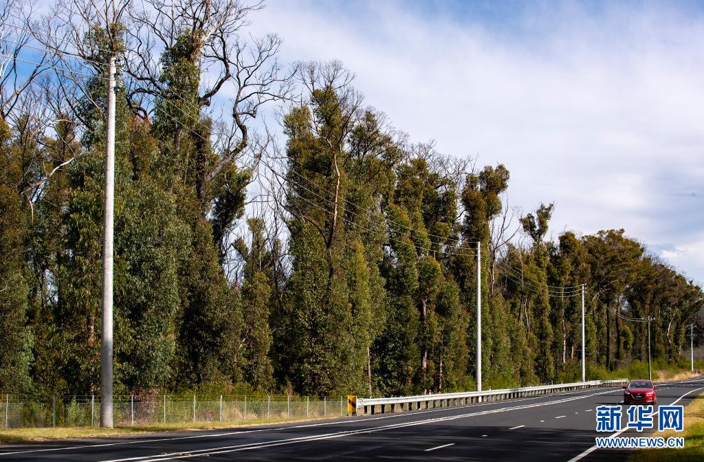 6月1日,在澳大利亞悉尼以西的藍(lán)山地區(qū),公路旁遭受2020年夏天山火災(zāi)害的林地部分植物已經(jīng)恢復(fù)繁茂。