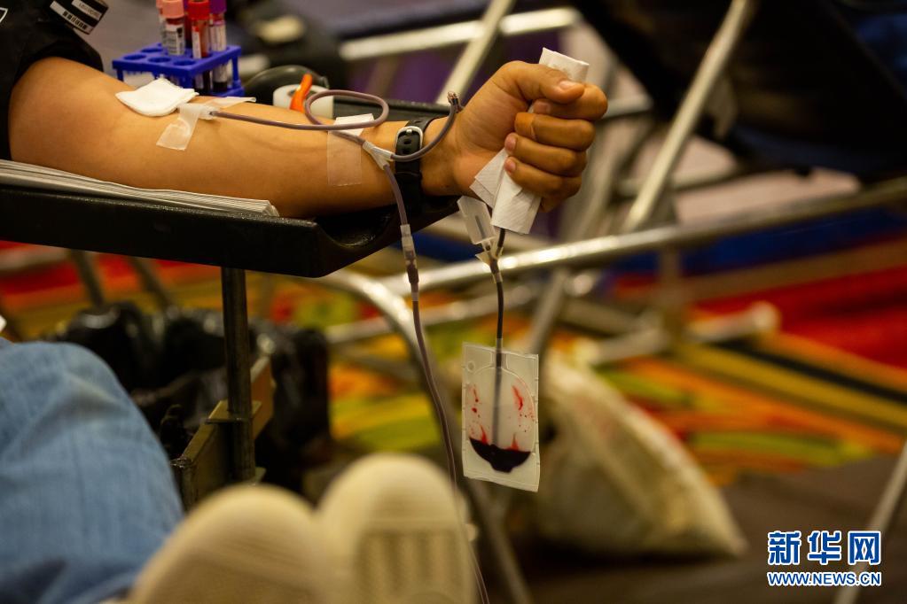 6月14日,在美國紐約州長島地區(qū)的尤寧代爾,獻(xiàn)血志愿者在美國紐約血液中心舉行的獻(xiàn)血活動上獻(xiàn)血。