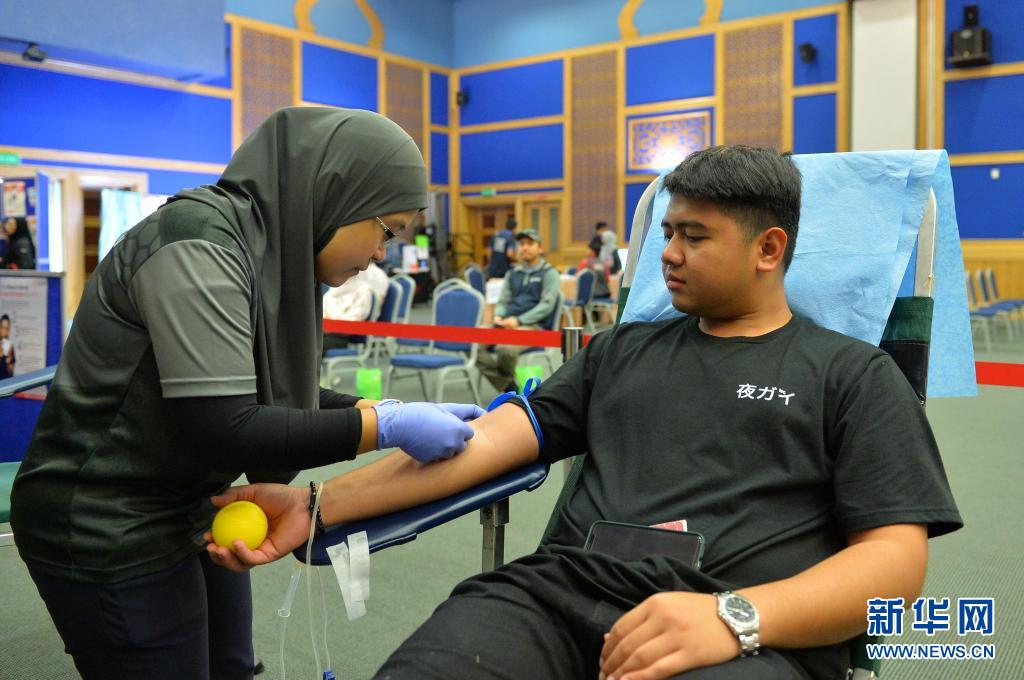 6月14日,一名男子在文萊斯里巴加灣市參與無償獻(xiàn)血活動(dòng)。