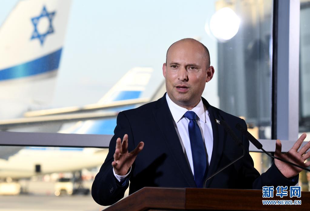 6月22日,以色列總理貝內(nèi)特在本古里安國(guó)際機(jī)場(chǎng)發(fā)表電視聲明。