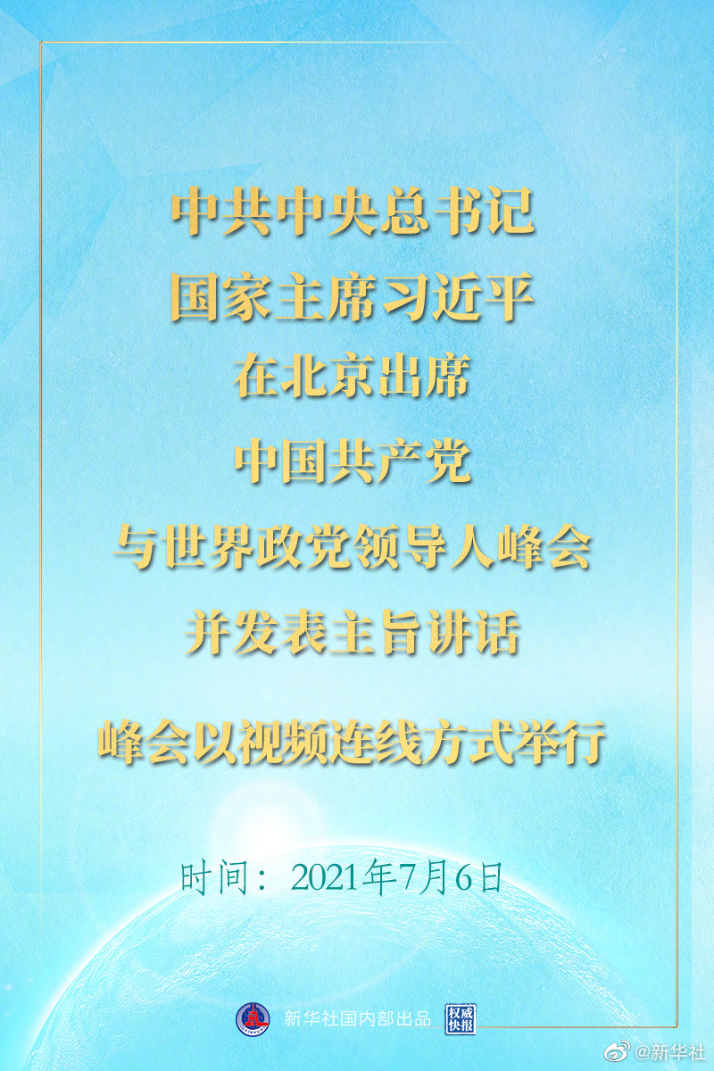 7月6日晚,中共中央總書記、國家主席習(xí)近平在北京出席中國共產(chǎn)黨與世界政黨領(lǐng)導(dǎo)人峰會(huì)并發(fā)表主旨講話。峰會(huì)以視頻連線方式舉行。