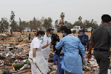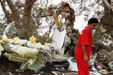 營救人員對墜機(jī)現(xiàn)場進(jìn)行檢查