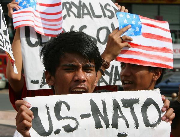 菲律賓民眾抗議多國部隊(duì)對利比亞進(jìn)行軍事打擊