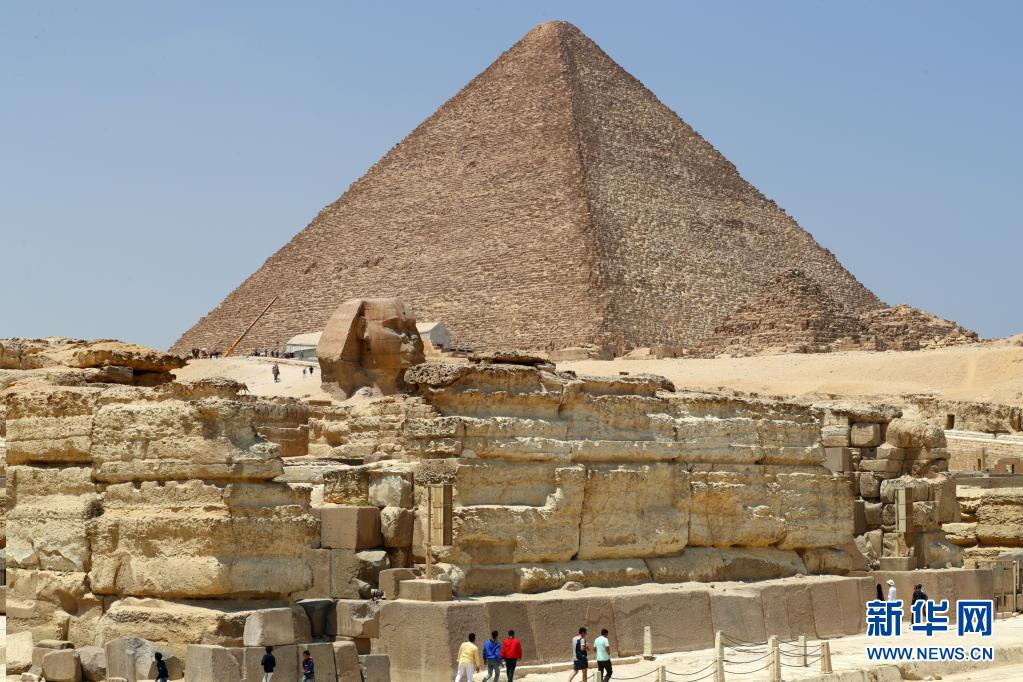 4月26日,游客在位于埃及吉薩省的金字塔群景區(qū)內(nèi)游玩。